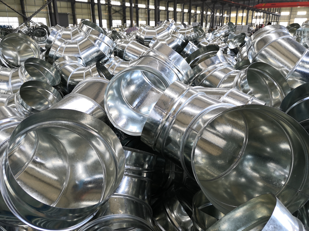 镀锌铁皮风管是以镀锌铁皮为主要原材料。经过咬口、机械加工成型;具有现场制作方便。而且同时具有可设计性,是传统的通风、空调用管道,同时随着技术的发展由以前的手工制作改变为现在的全部机械化生产。具有效率高,加工尺寸精确等优点。风管又叫镀锌铁皮风管就。是用于空气输送和分布的管道系统。风管可按截面形状和材质分类。按截面形状,风管可分为圆形风管,矩形风管,扁圆风管等多种,其中圆形风管阻力*小的高度尺寸,制作复杂。所以应用以矩形风管为主。按材质,风管可分为金属风管,复合风管,索斯风管等。