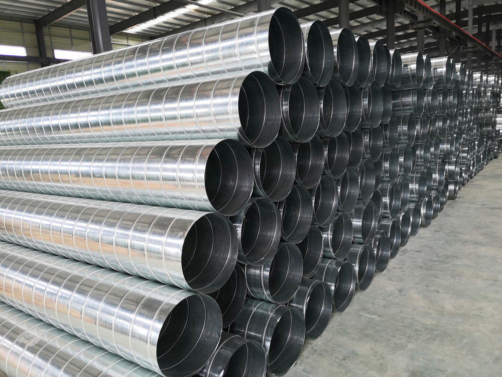 镀锌铁皮风管是用金属带料卷制成螺旋形咬缝的薄壁管,圆形,无焊接,不漏气,不漏水,多用于送风和散装物料输送,代替传统的白铁管(即手工咬缝铁管)。是风管的一种,全机制,直管无需手工敲打。其主要用途如下: